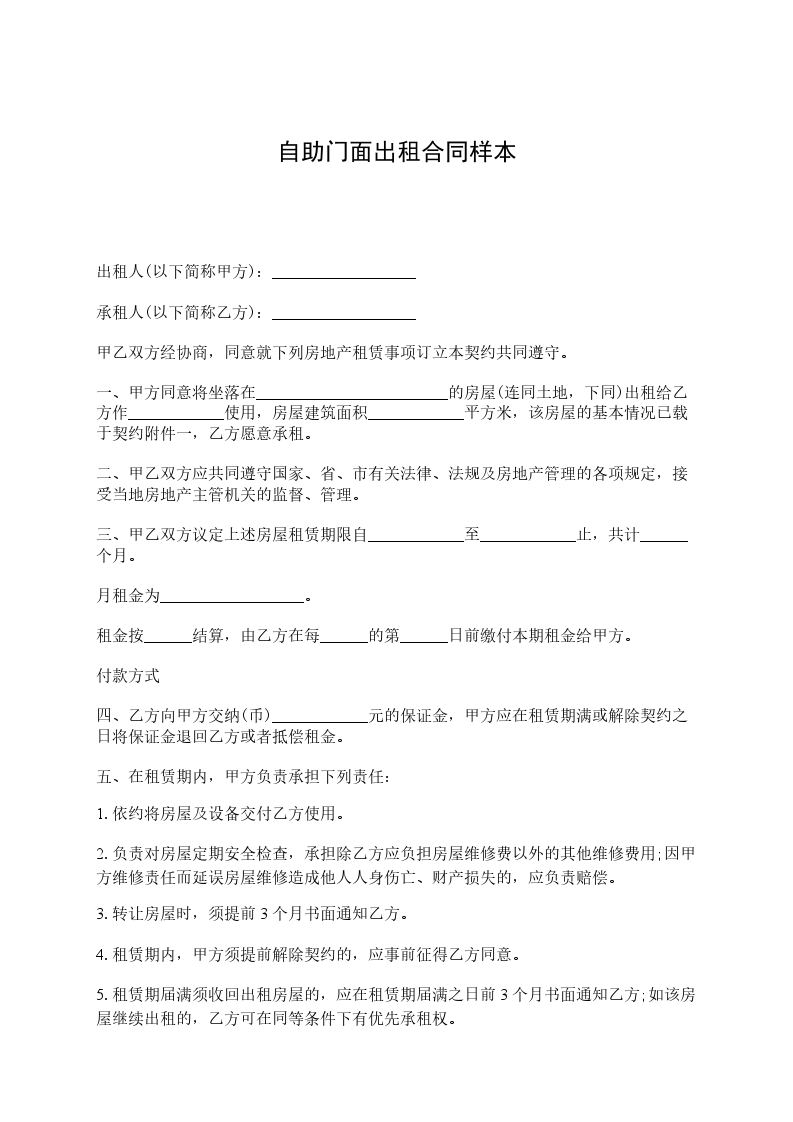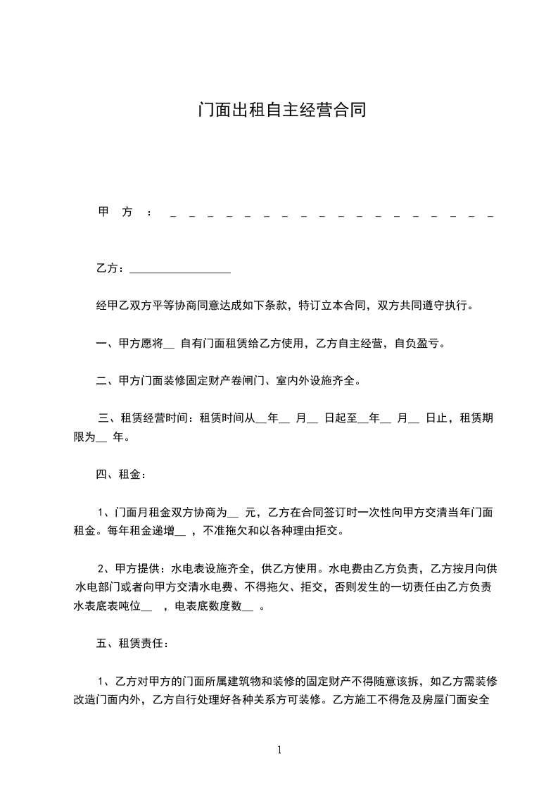 十六、本店面出租协议书样本一式两份,甲乙双方各执一份。