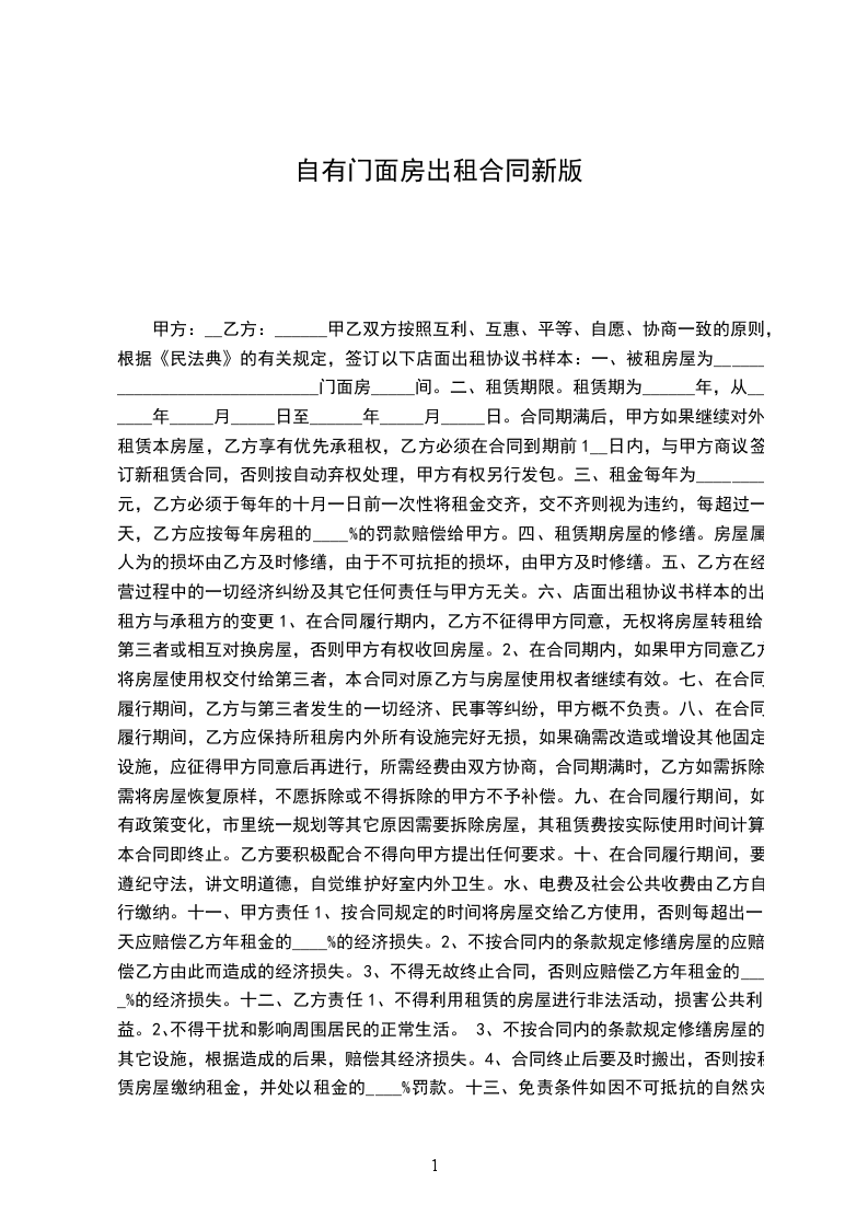 甲乙双方按照互利、互惠、平等、自愿、协商一致的原则,根据《民法典》的有关规定,签订以下店面出租协议书样本: