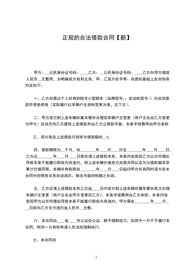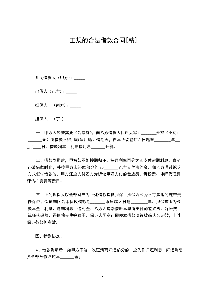 一、甲方因经营需要(为家庭),向乙方借款人民币大写:_______元整(小写:_______元)所借款不得用非法用途。借期天,自本协议签订之日起至________年____月____日。借款利率:利息按月息_______计算。