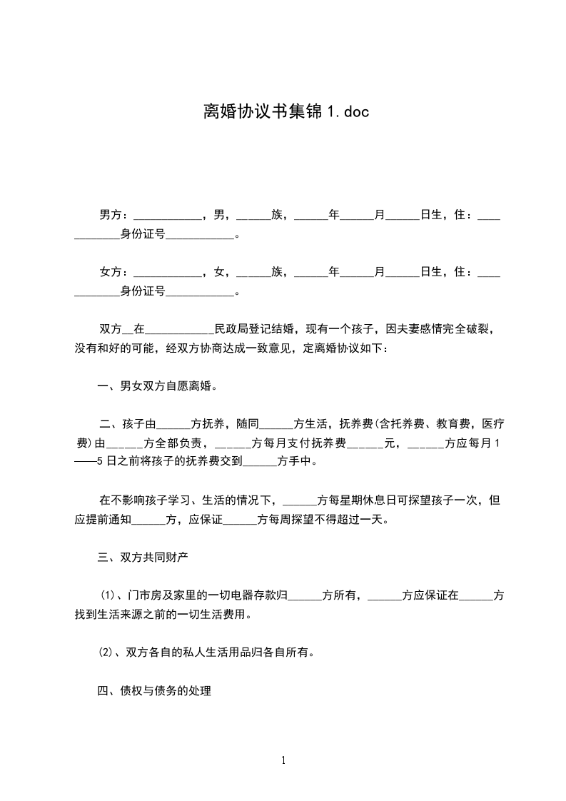二.子女抚养方面:双方婚后生育一女。现双方决定小孩由女方抚养,男方每月支付20_____元抚养费直至孩子年满18周岁,如在此期间,小孩有大额教育支出(包括报兴趣班等)或医疗支出,男方需与女方各半负担,另外付费至女方账户。女方需保障男方对孩子的探视权。