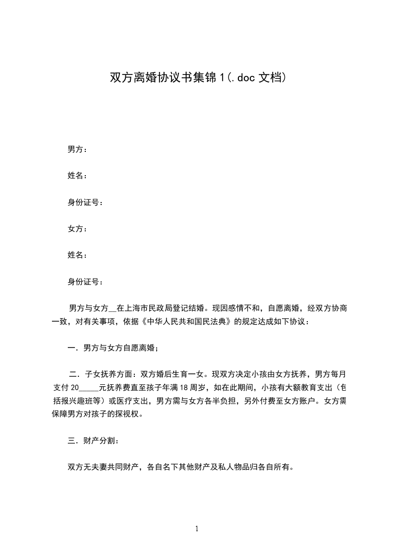 男方与女方__在上海市民政局登记结婚。现因感情不和,自愿离婚,经双方协商一致,对有关事项,依据《中华人民共和国民法典》的规定达成如下协议: