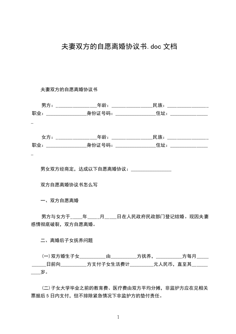 以上协议是双方真实的意思表示,协议一式三份,自双方在民政部门办理离婚登记后生效。
