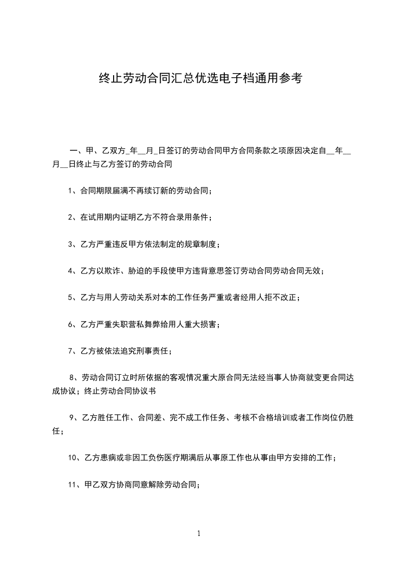 一、甲、乙双方_年__月_日签订的劳动合同甲方合同条款之项原因决定自__年__月__日终止与乙方签订的劳动合同