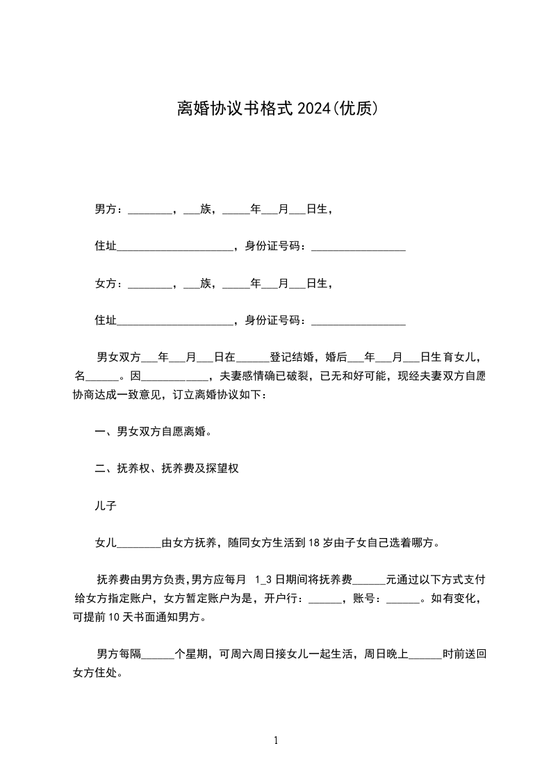 男女双方___年___月___日在______登记结婚,婚后___年___月___日生育女儿,名______。因____________,夫妻感情确已破裂,已无和好可能,现经夫妻双方自愿协商达成一致意见,订立离婚协议如下: