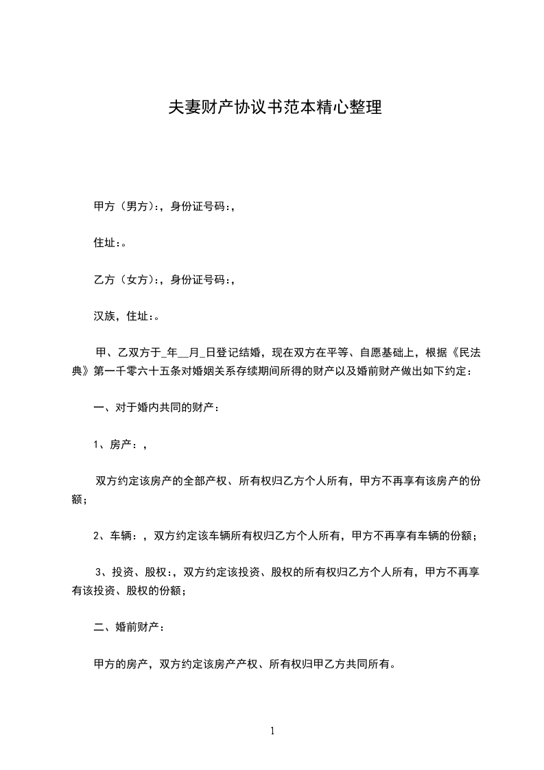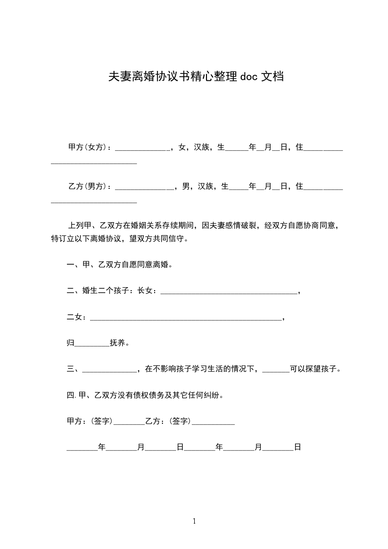 甲方(女方):______________,女,汉族,生______年__月__日,住________________________________