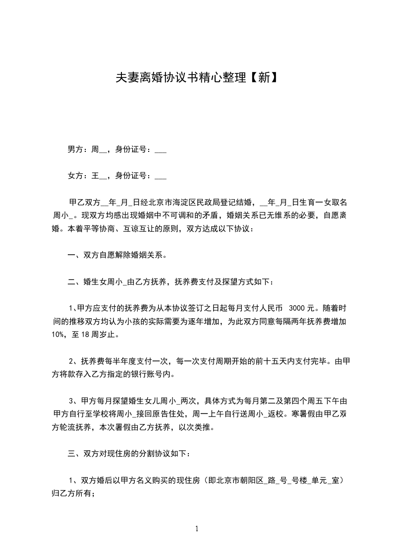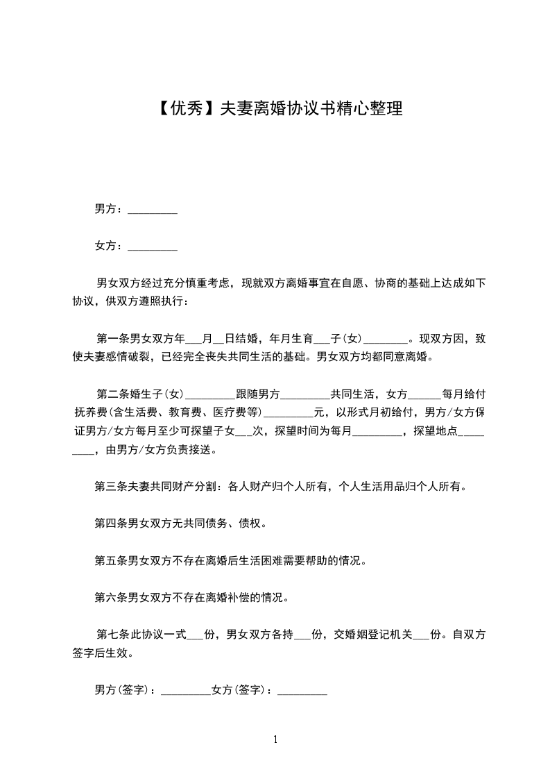 乙方(男方):_______________,男,汉族,生_____年__月__日,住________________________________