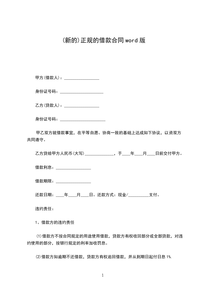 乙方保证按《用款计划表》及时供应资金。如因乙方责任未按期提供贷款则乙方须向甲方支付____‰的违约金。