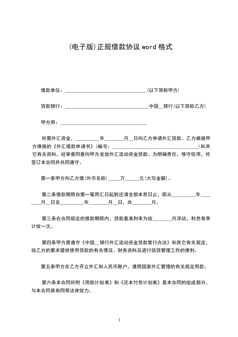 第一条甲方向乙方借(外币名称)_____万______元(大写金额)。