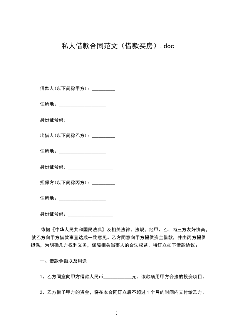 甲方借款用购买,建造,翻建,大修座落_____区(县)____街道(镇)_____路(村)_____弄_____号_____室的住房。