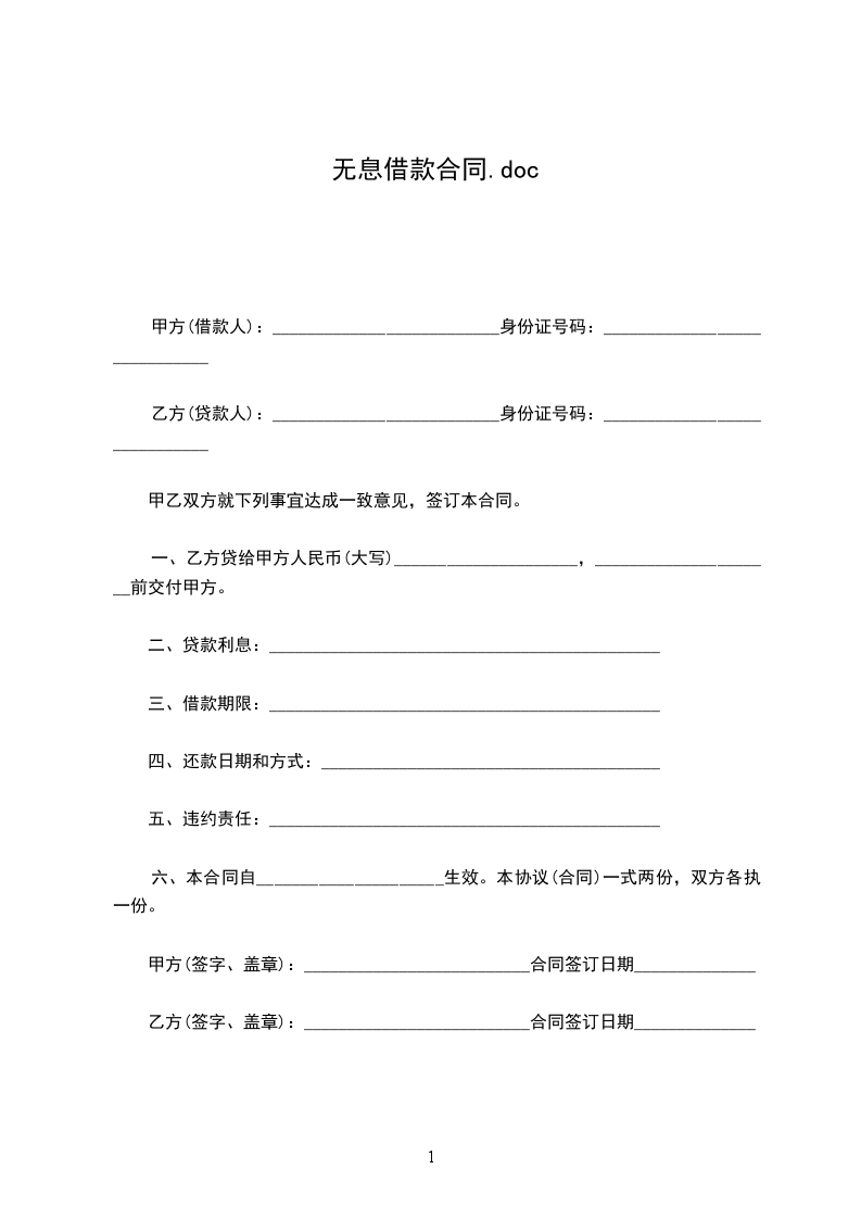 甲方(出借人):________________________,身份证号码:_______________________,住址:___________________,电话:___________________