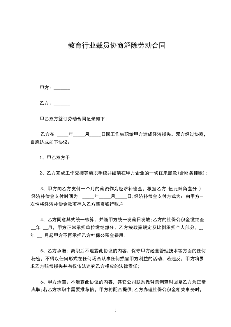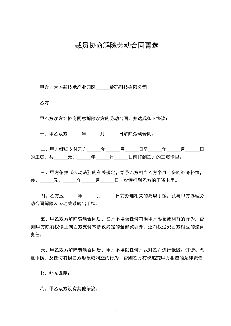 6、乙方自愿放弃其他所有诉求。解除劳动合同范本。