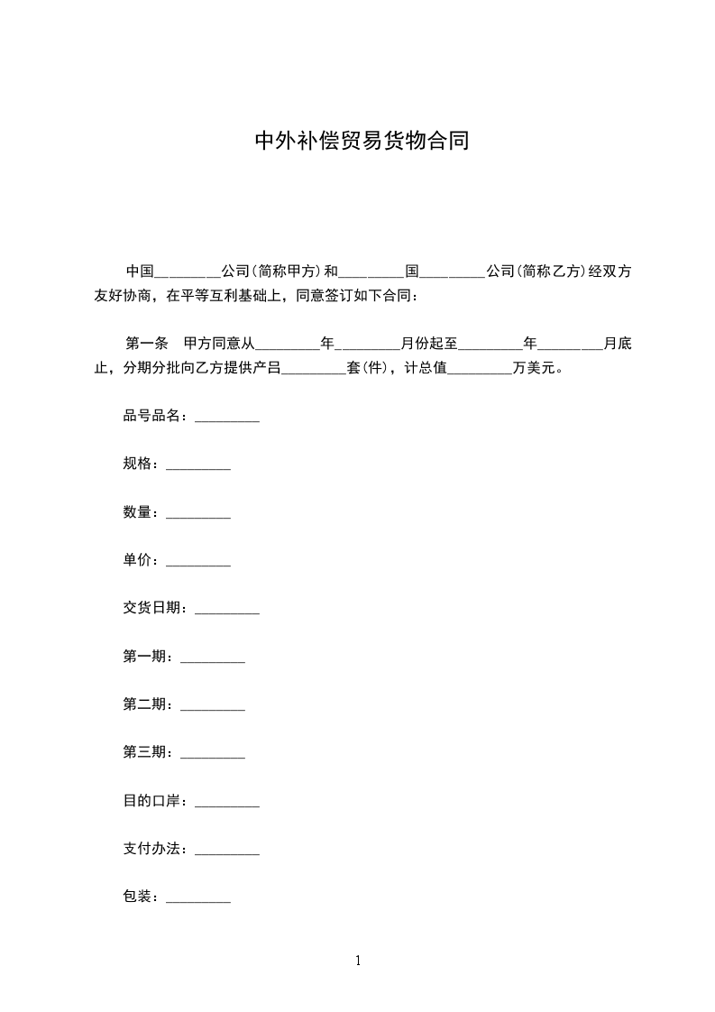 中国_________公司(简称甲方)和_________国_________公司(简称乙方)经双方友好协商,在平等互利基础上,同意签订如下合同: