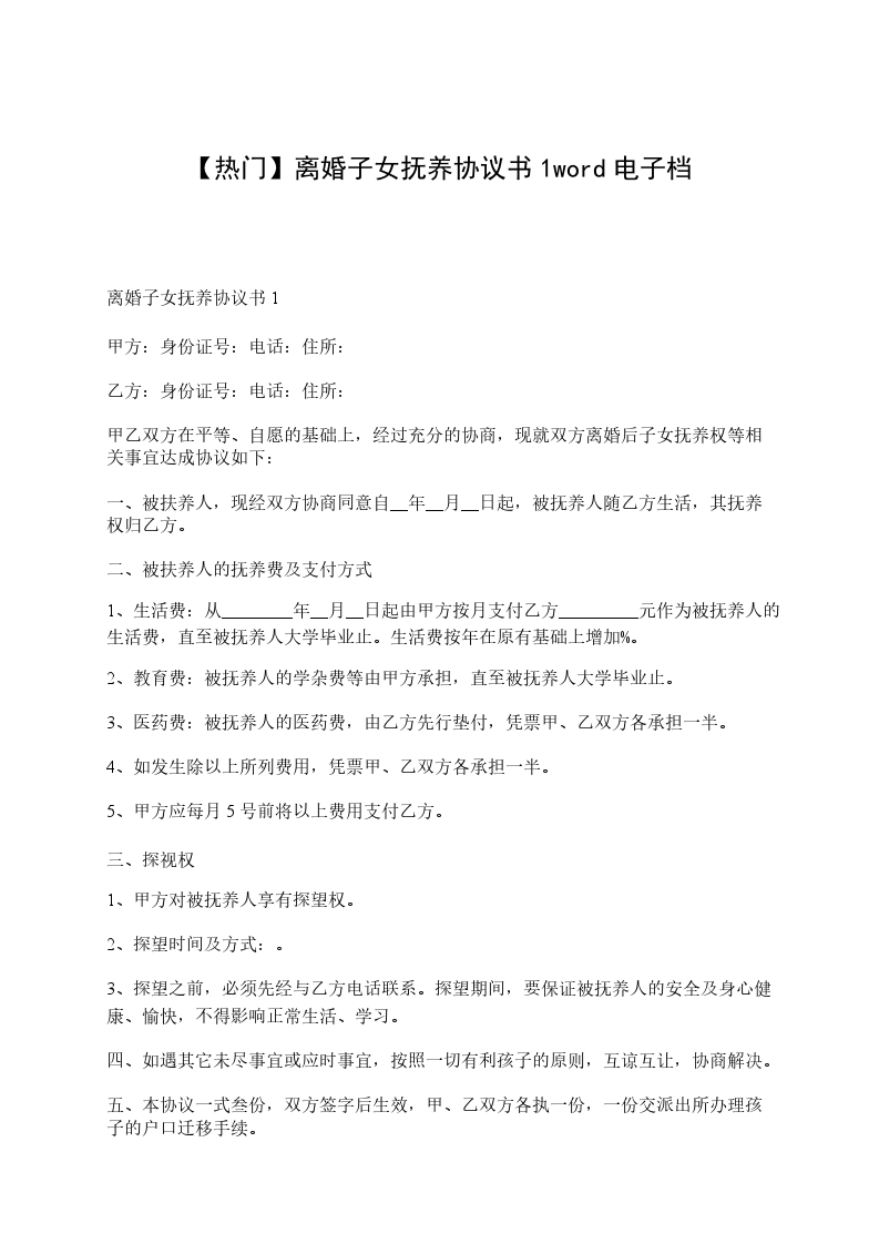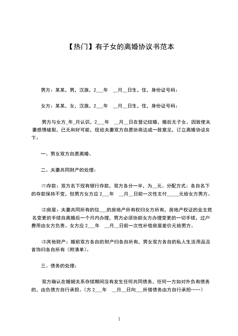 女方:赵__,女,汉族,____年__月__日生,住______,身份证号码: