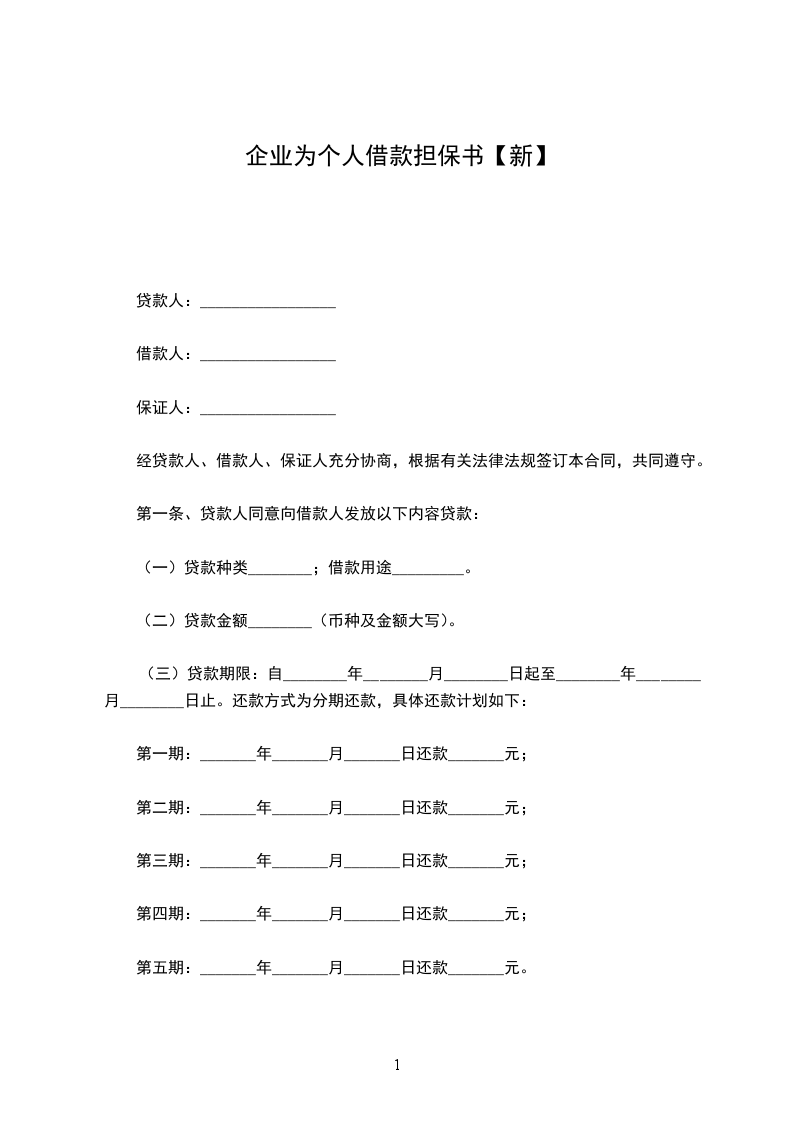 第五期:_______年_______月_______日还款_______元。