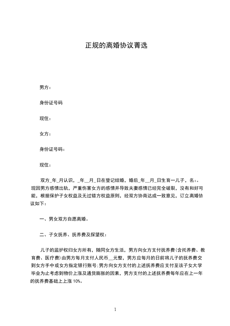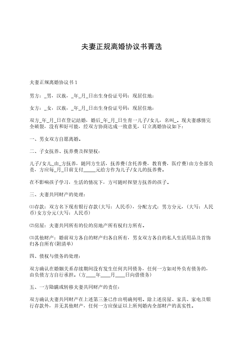 夫妻正规离婚协议书2男方:____,汉族,生2___年__月__日身份证号码:____