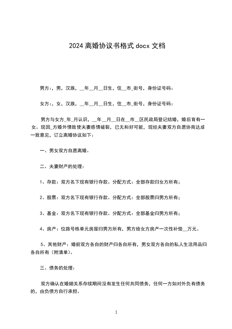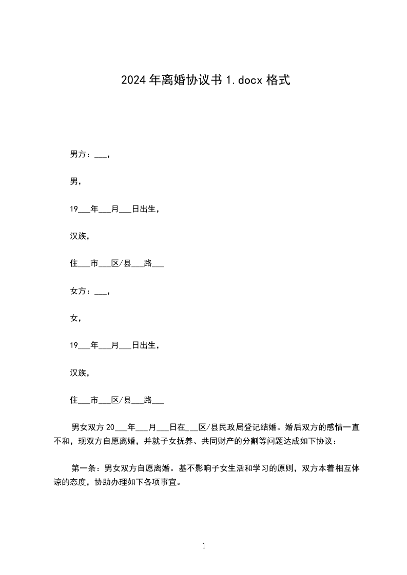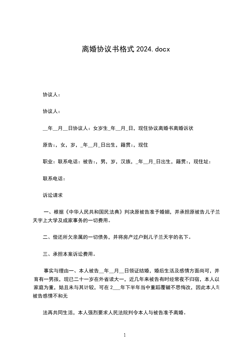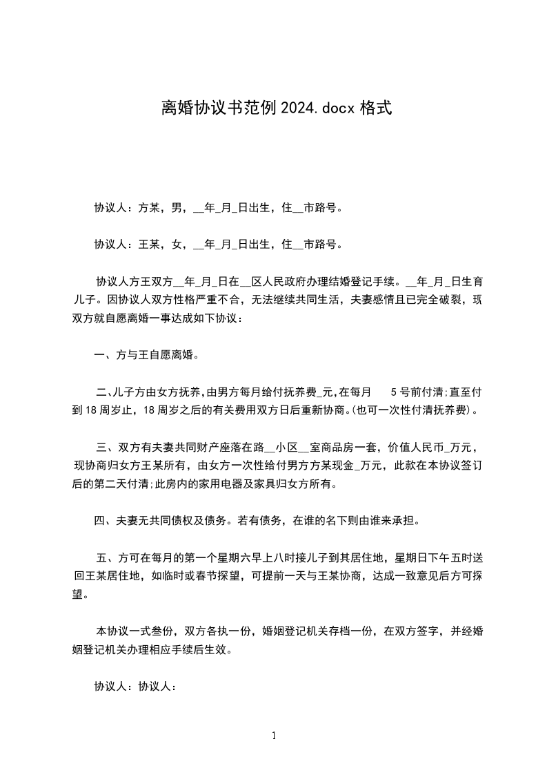 协议人:王某,女,__年_月_日出生,住__市路号。