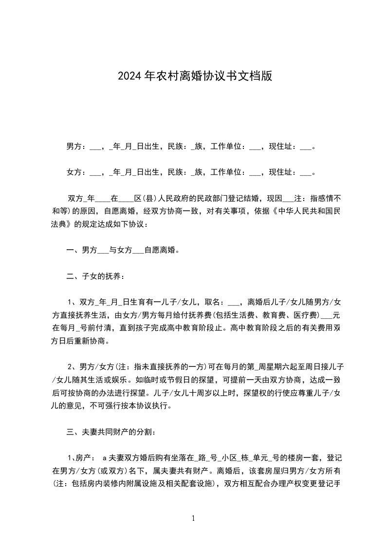 男方:王,汉族,25岁,省县乡村人,住本村。女方:肖,汉族,23岁,省县乡村人,住本村。男女双方__年9月1日结婚,__年12月生一女孩王,现就离婚事议达成如下协议,供双方遵照执行:1男方:王,汉族,25岁,__省__县__乡__村人,住本村。