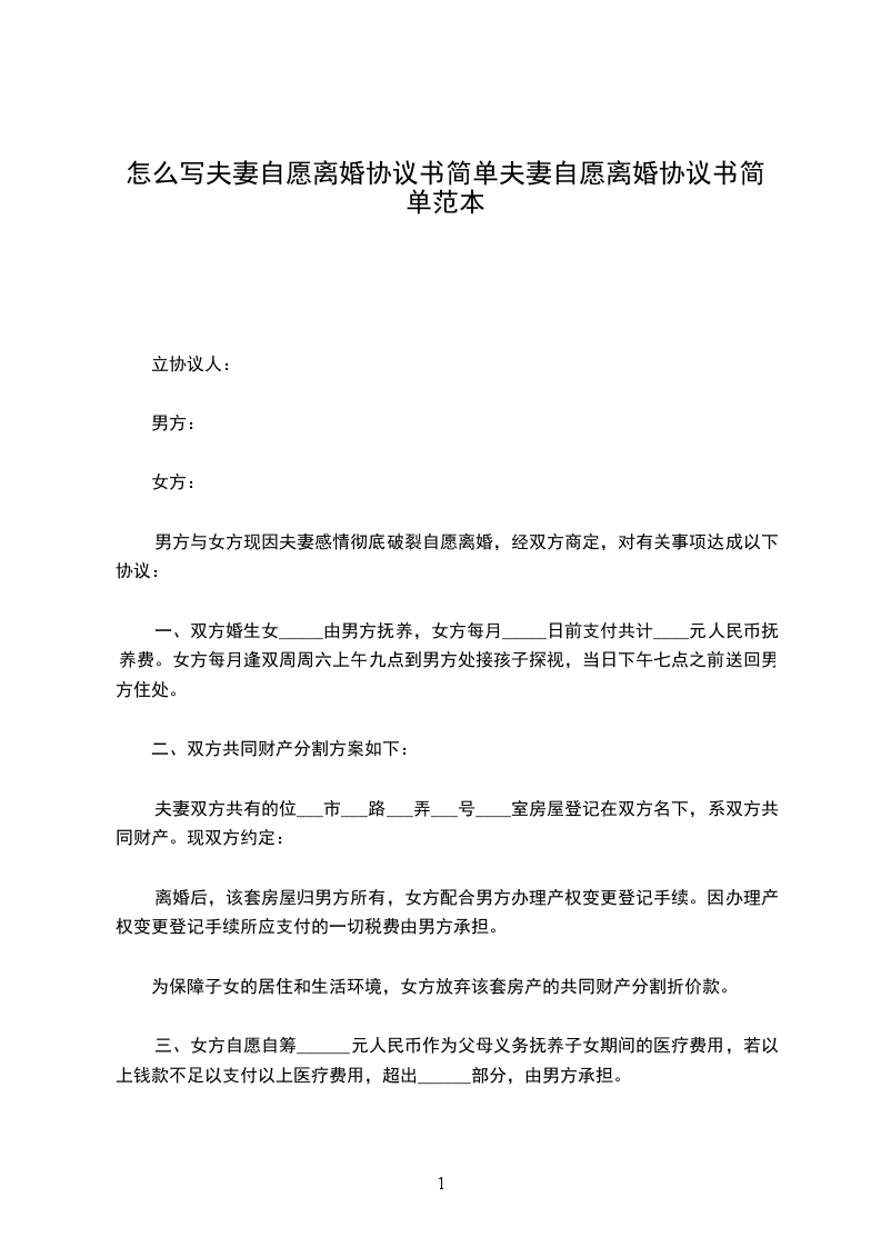 (本协议一式三份,当事人双方各执一份,交婚姻登记机关存档备案一份)