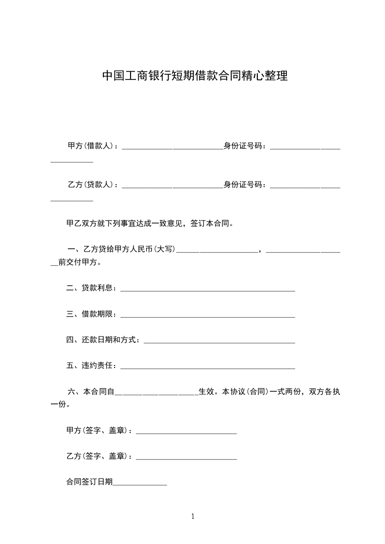 甲方(借款人):__________________________身份证号码:_____________________________