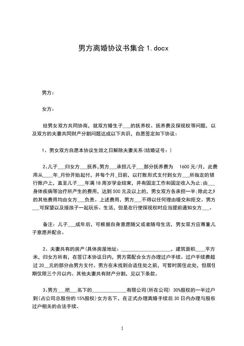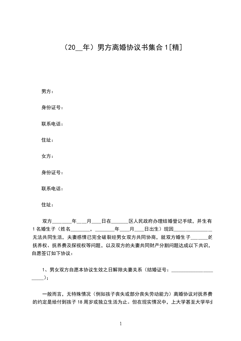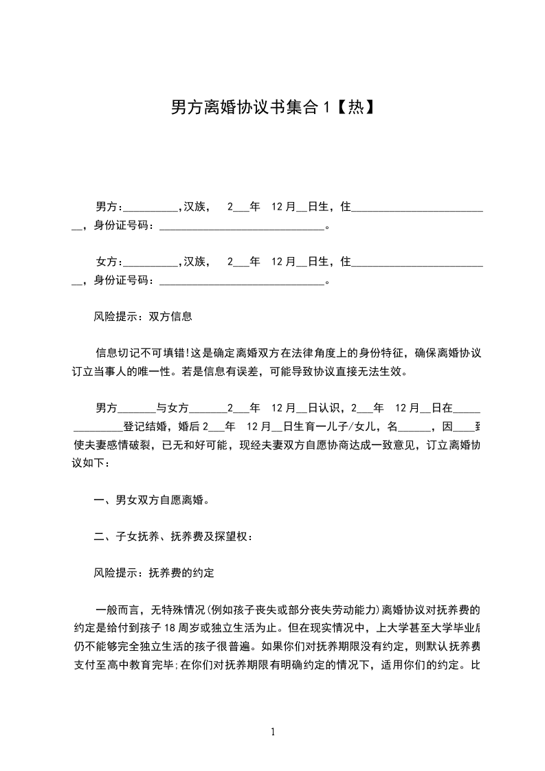 男方:______,男,汉族,______出生,身份证号____________,住____________。
