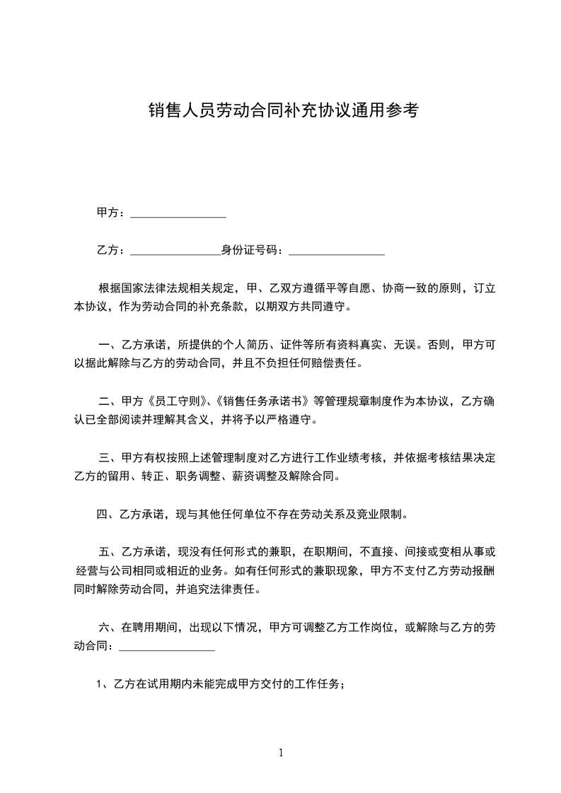 4、乙方必须全身心的为公司服务,不得为其他公司推销任何产品,或有任何兼职情况发生