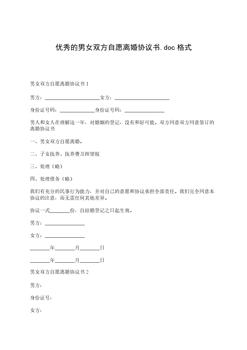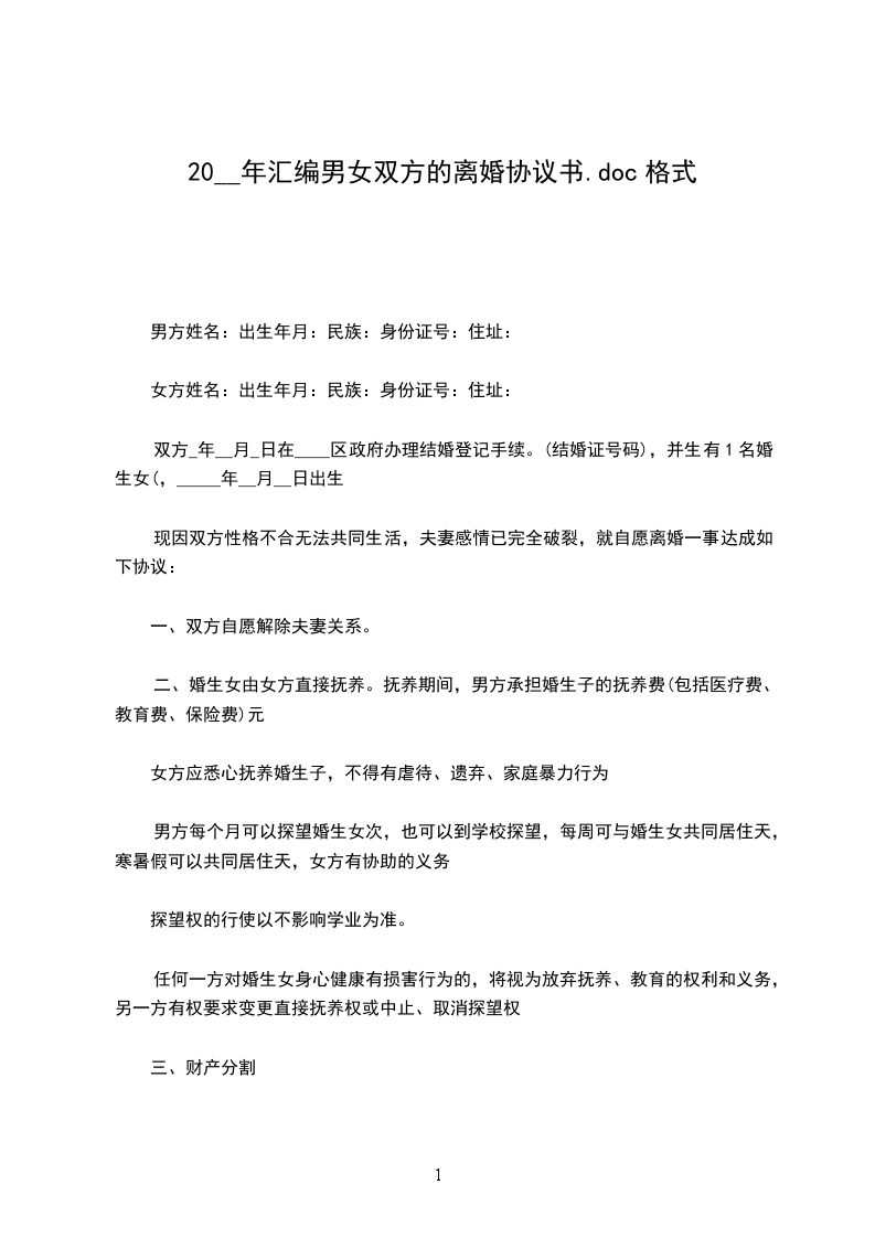 男方与女方_年_月认识,_年__月_日在登记结婚,婚后_年__月_日生育一儿子/女儿,名。因致使夫妻感情破裂,已无和好可能,现经夫妻双方自愿协商达成一致意见,订立离婚协议如下: