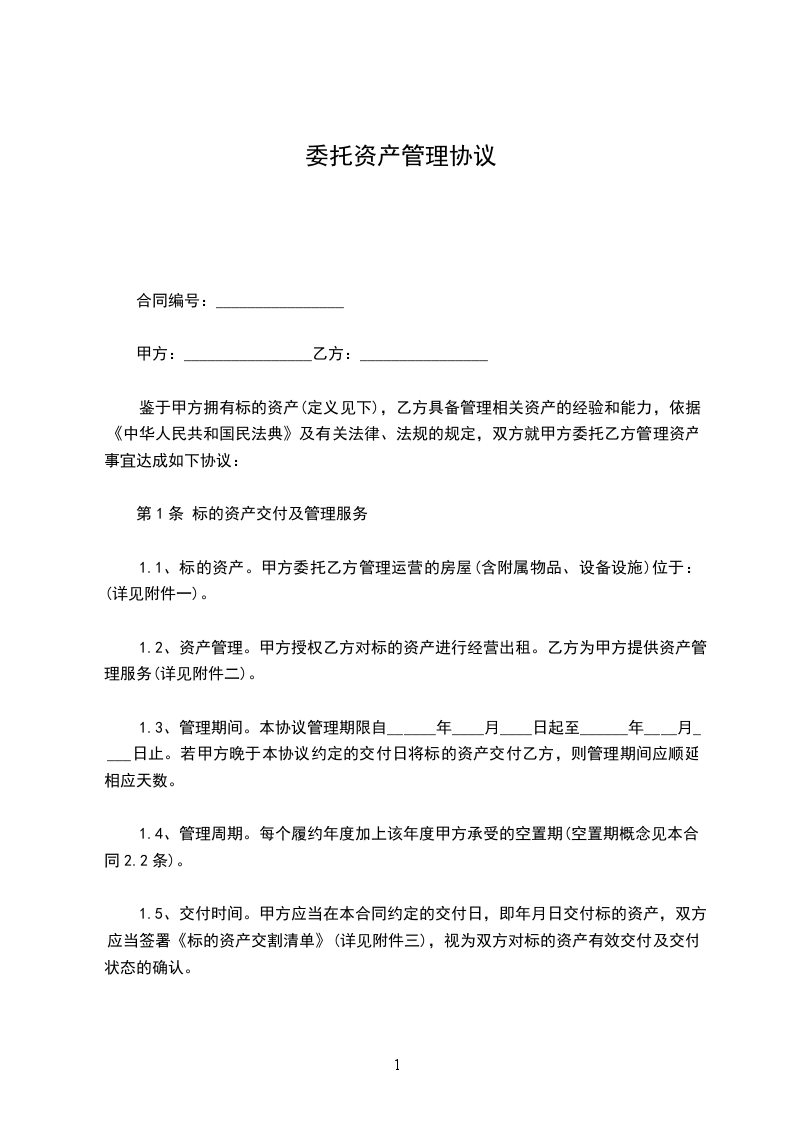 甲乙双方为共谋发展,经友好协商,甲方委托乙方进行资产管理,现就有关事项达如下协议: