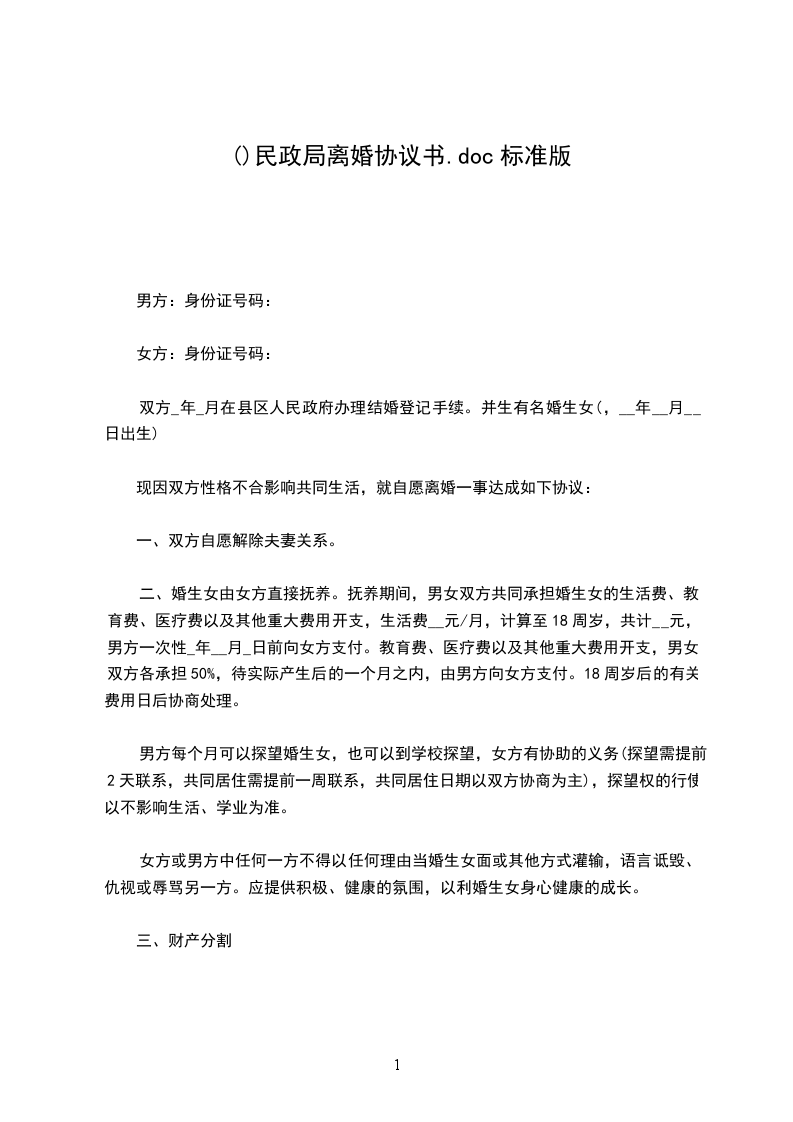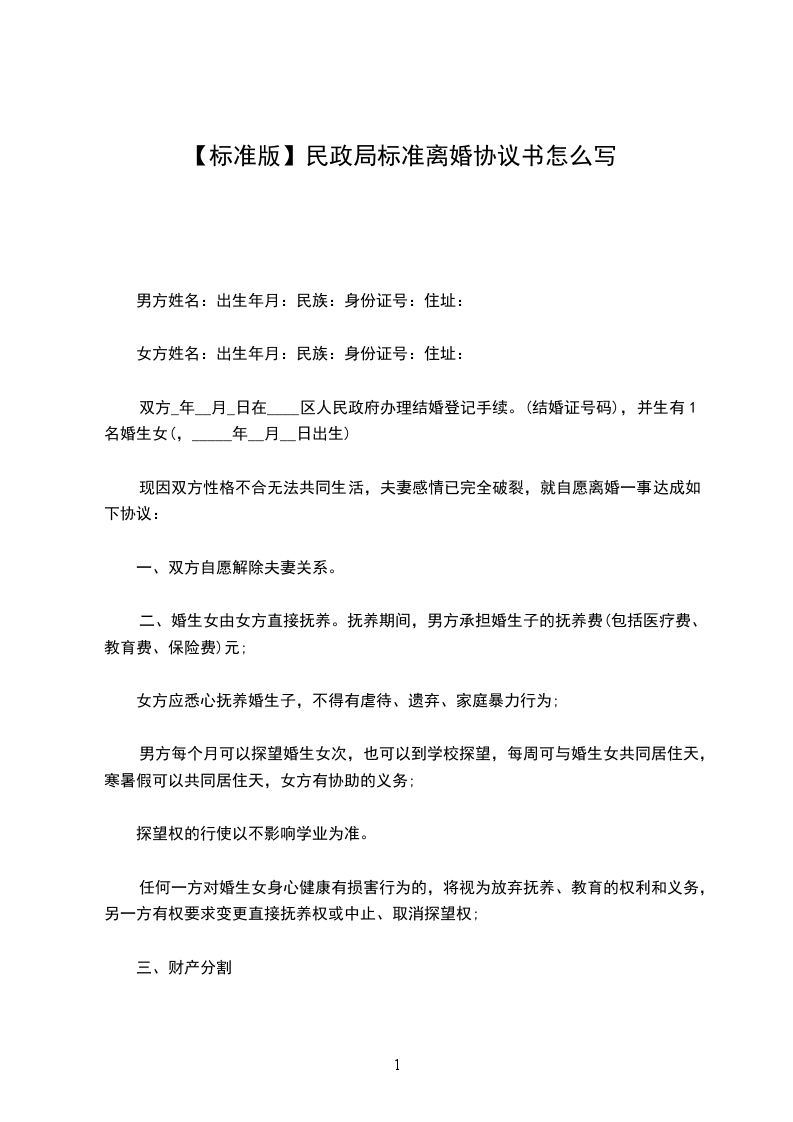 协议人:,女,_年_月_日出生,汉族,住__市路号