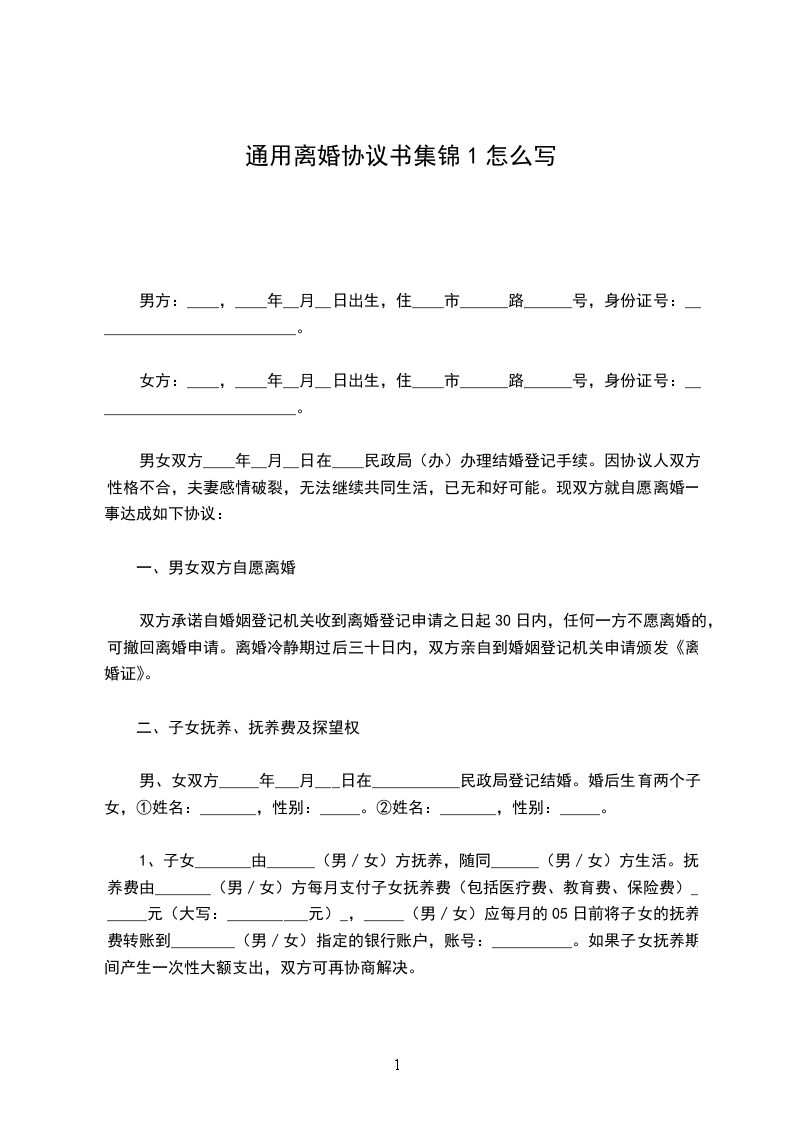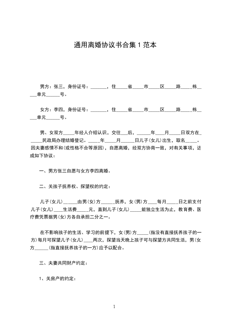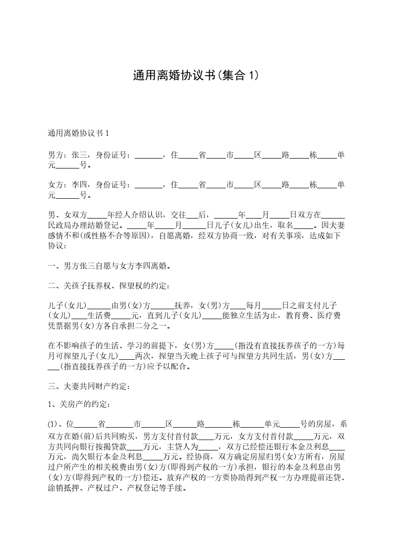 通用离婚协议书协议人:方某,男,__年_月_日出生,住__市路号。