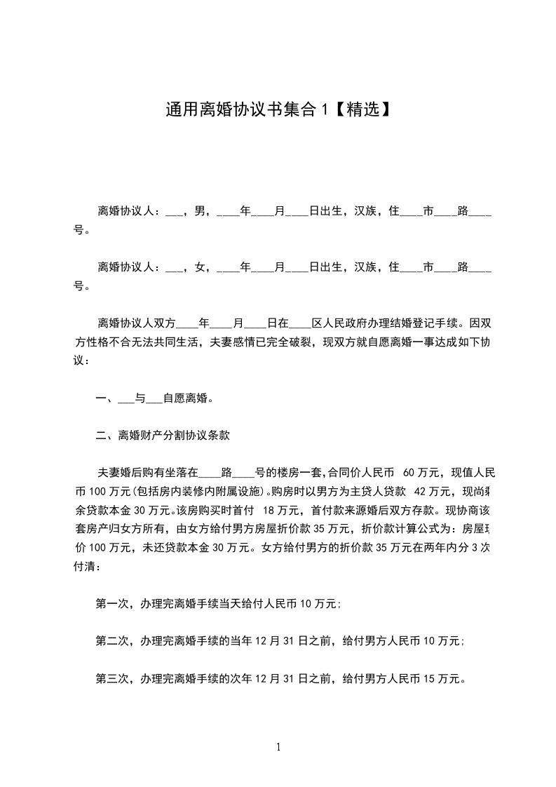 通用离婚协议书离婚协议人:___,男,____年____月____日出生,汉族,住____市____路____号。