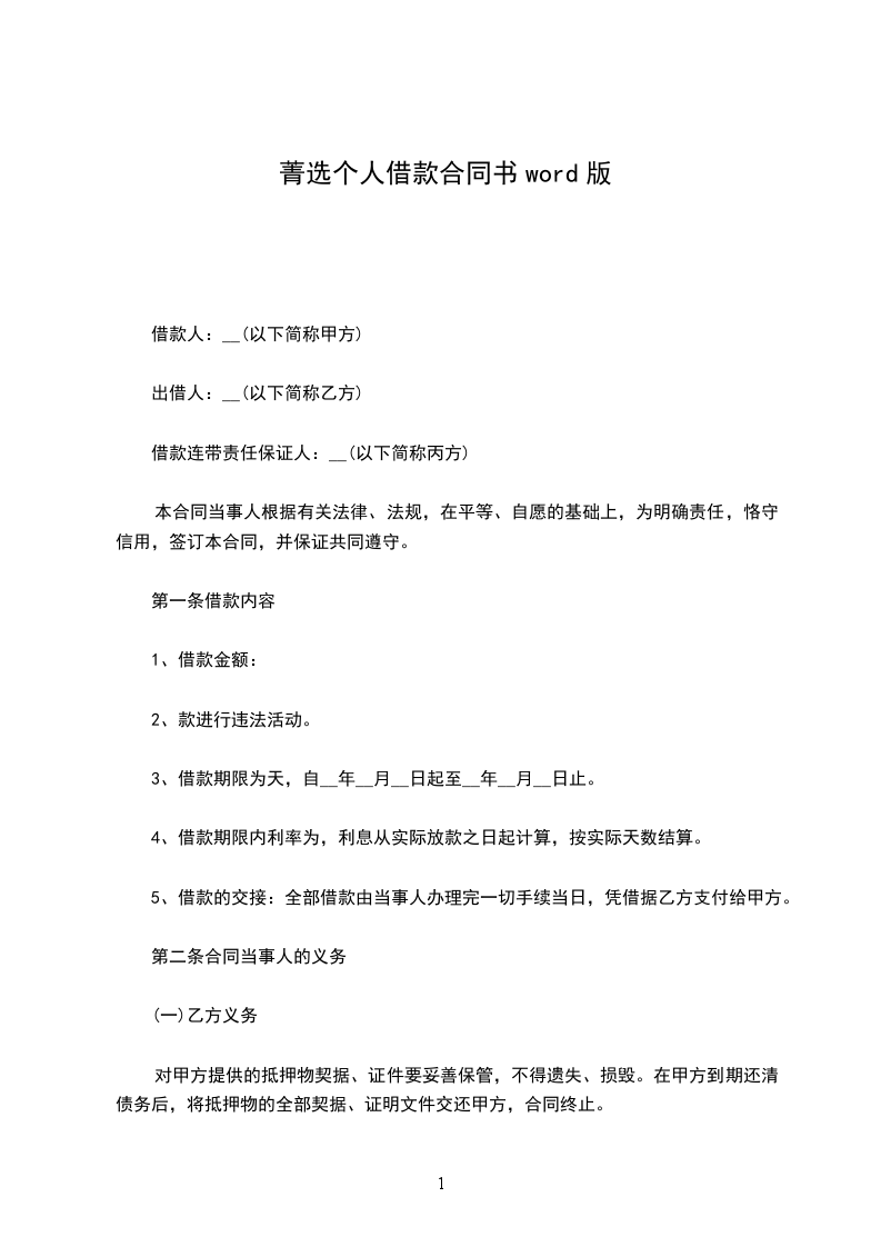5、借款的交接:全部借款由当事人办理完一切手续当日,凭借据乙方支付给甲方。