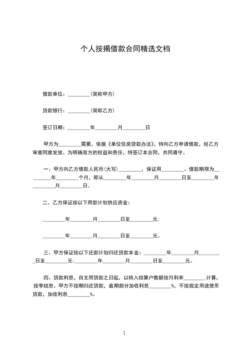 甲方为_________需要,依据《单位住房贷款办法》,特向乙方申请借款,经乙方审查同意发放。为明确双方的权益和责任,特签订本合同,共同遵守。