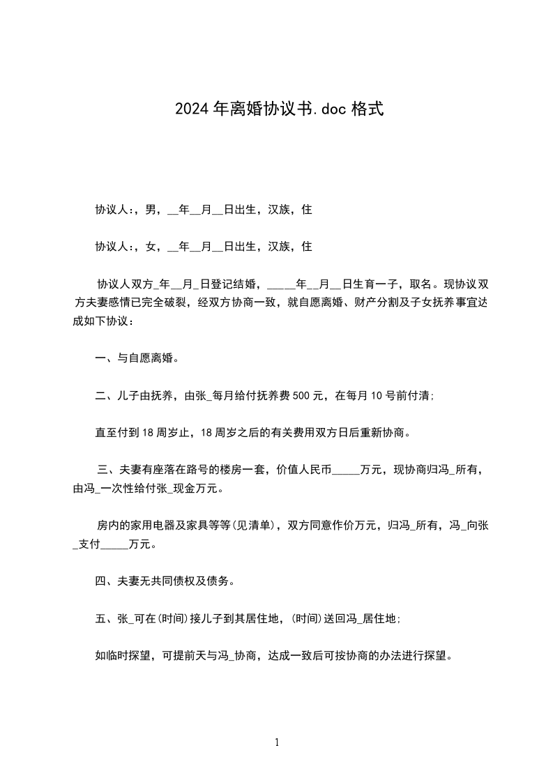 4.乙方取得该房屋的产权及结合本协议书的其他财产分割约定,对甲方的相应补偿为,向甲方支付人民币__元。