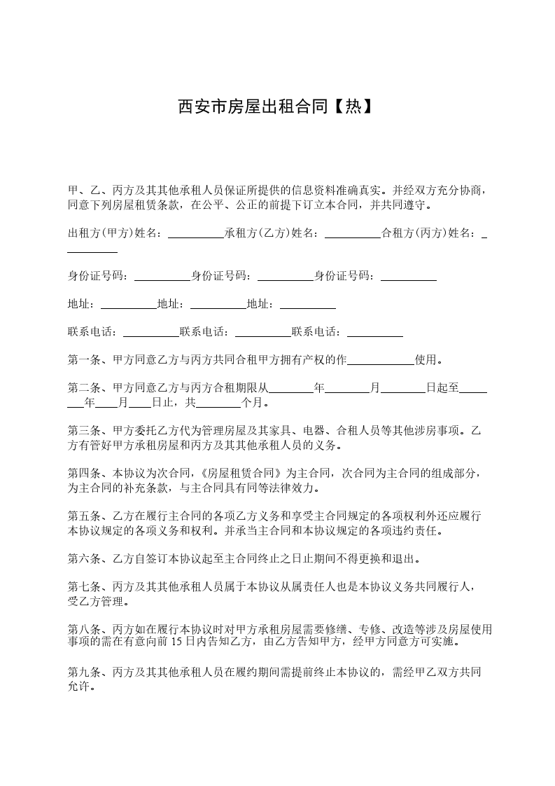 第十二条本合同一式两份,甲乙双方各执一份。