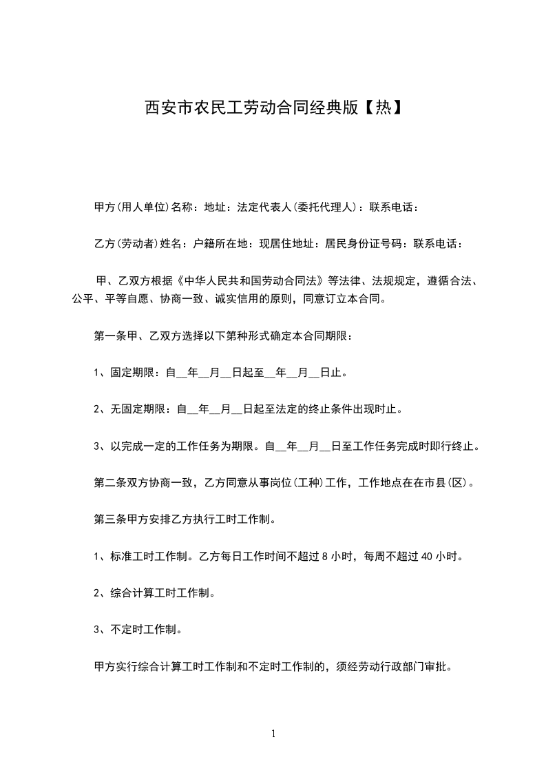 1、实行月(周、日、小时)工资制。乙方月(周、日、小时)工资为__元。
