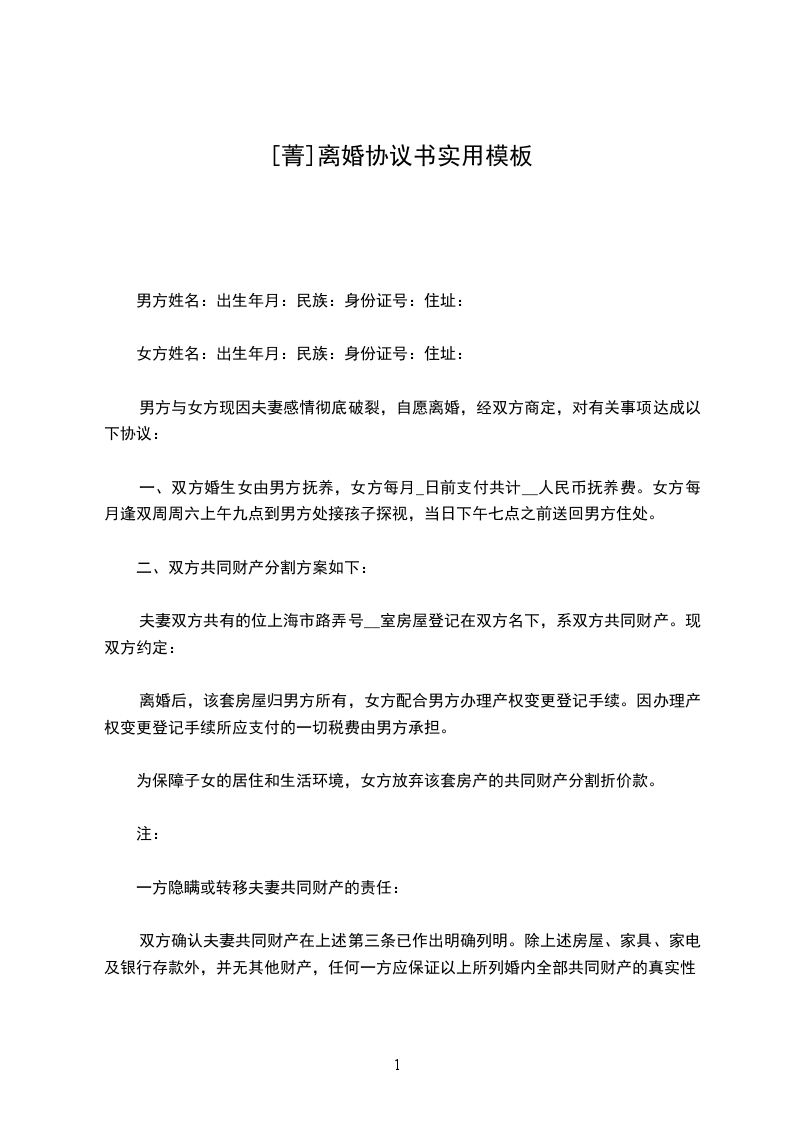 男方与女方_年_月认识,_年__月_日在登记结婚,婚后_年__月_日生育一儿子/女儿,名。因致使夫妻感情破裂,已无和好可能,现经夫妻双方自愿协商达成一致意见,订立离婚协议如下: