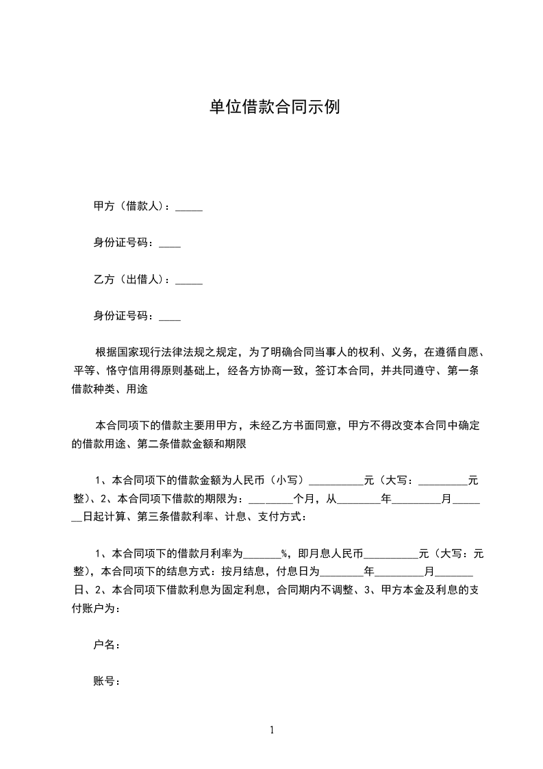 1、本合同项下的借款月利率为_______%,即月息人民币__________元(大写:元整),本合同项下的结息方式:按月结息,付息日为________年_________月_______日、2、本合同项下借款利息为固定利息,合同期内不调整、3、甲方本金及利息的支付账户为: