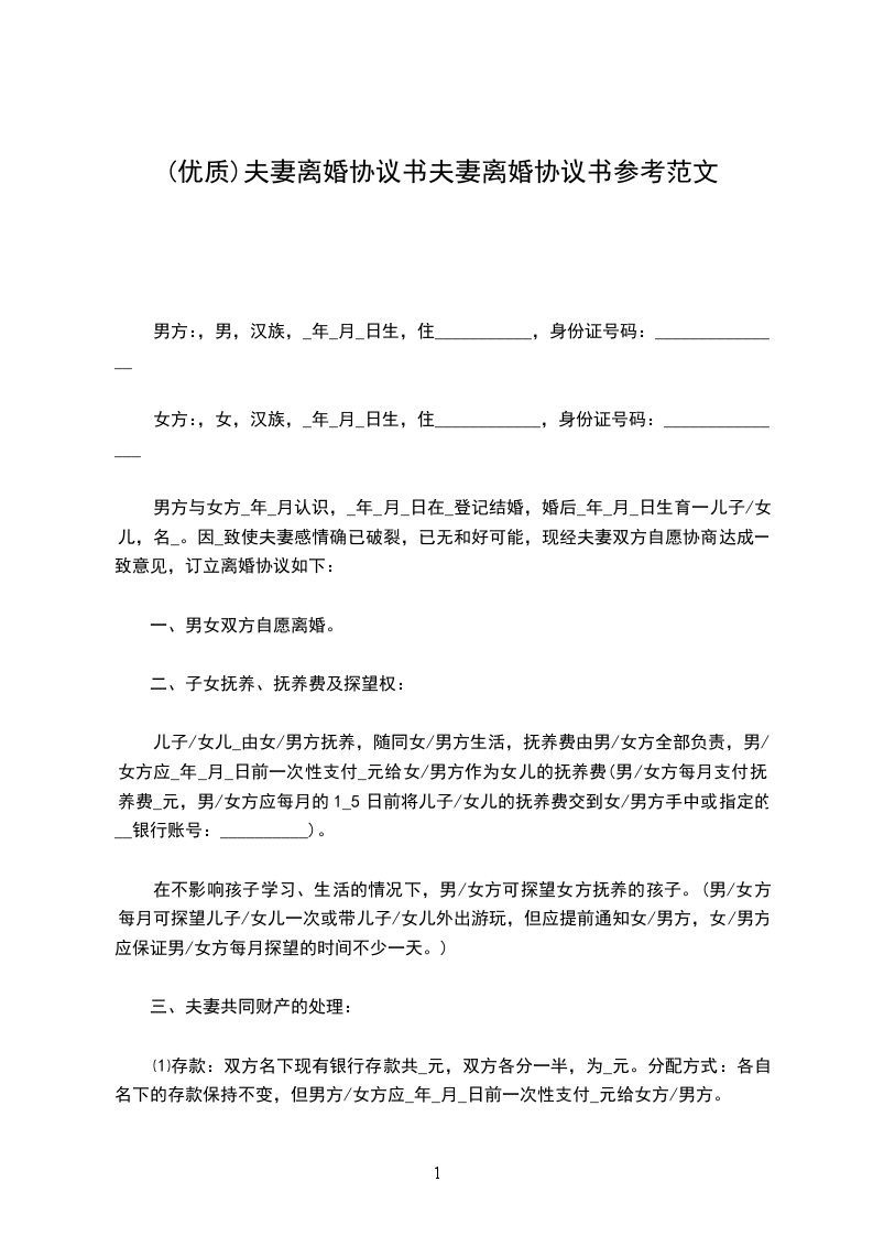 男方与女方_年_月认识,_年_月_日在_登记结婚,婚后_年_月_日生育一儿子/女儿,名_。因_致使夫妻感情确已破裂,已无和好可能,现经夫妻双方自愿协商达成一致意见,订立离婚协议如下: