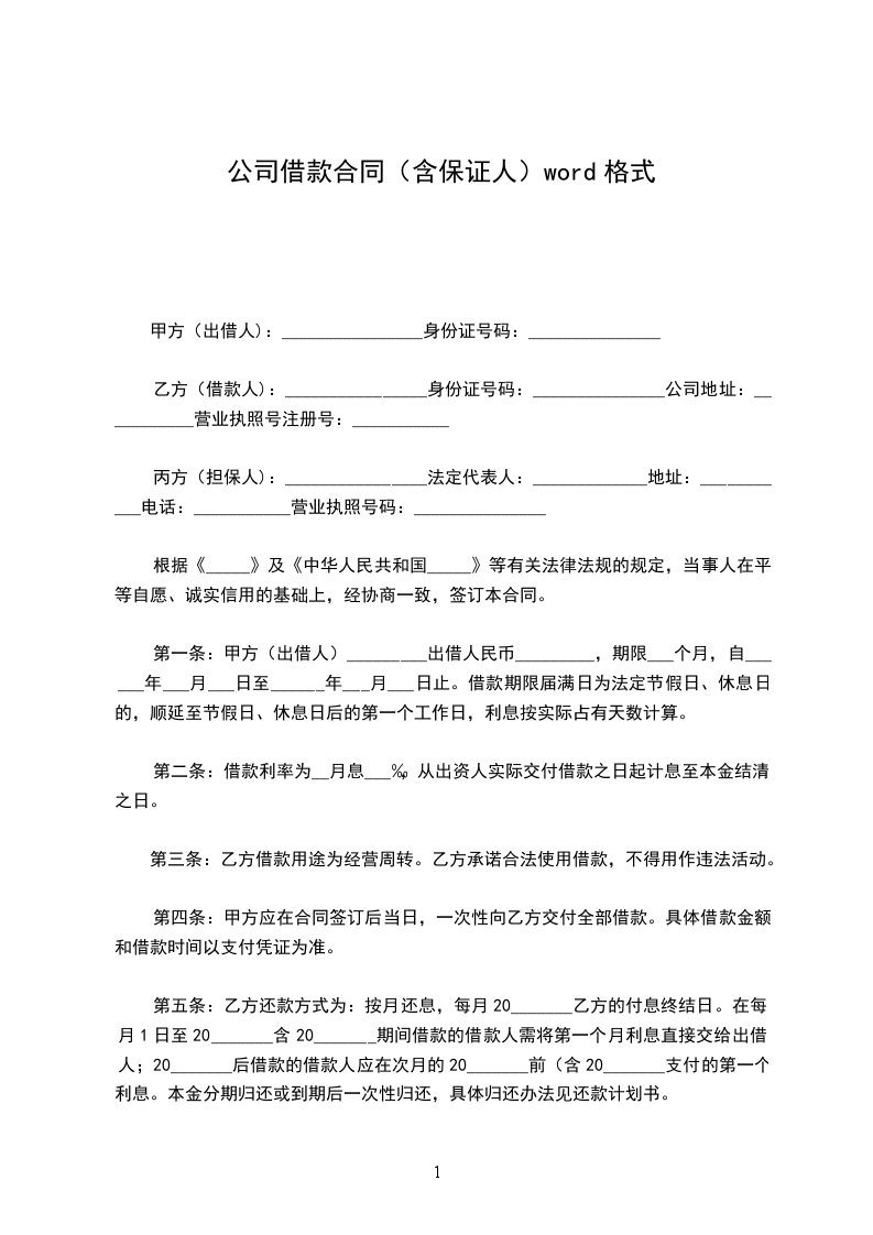 甲方(出借方):_________________________________________