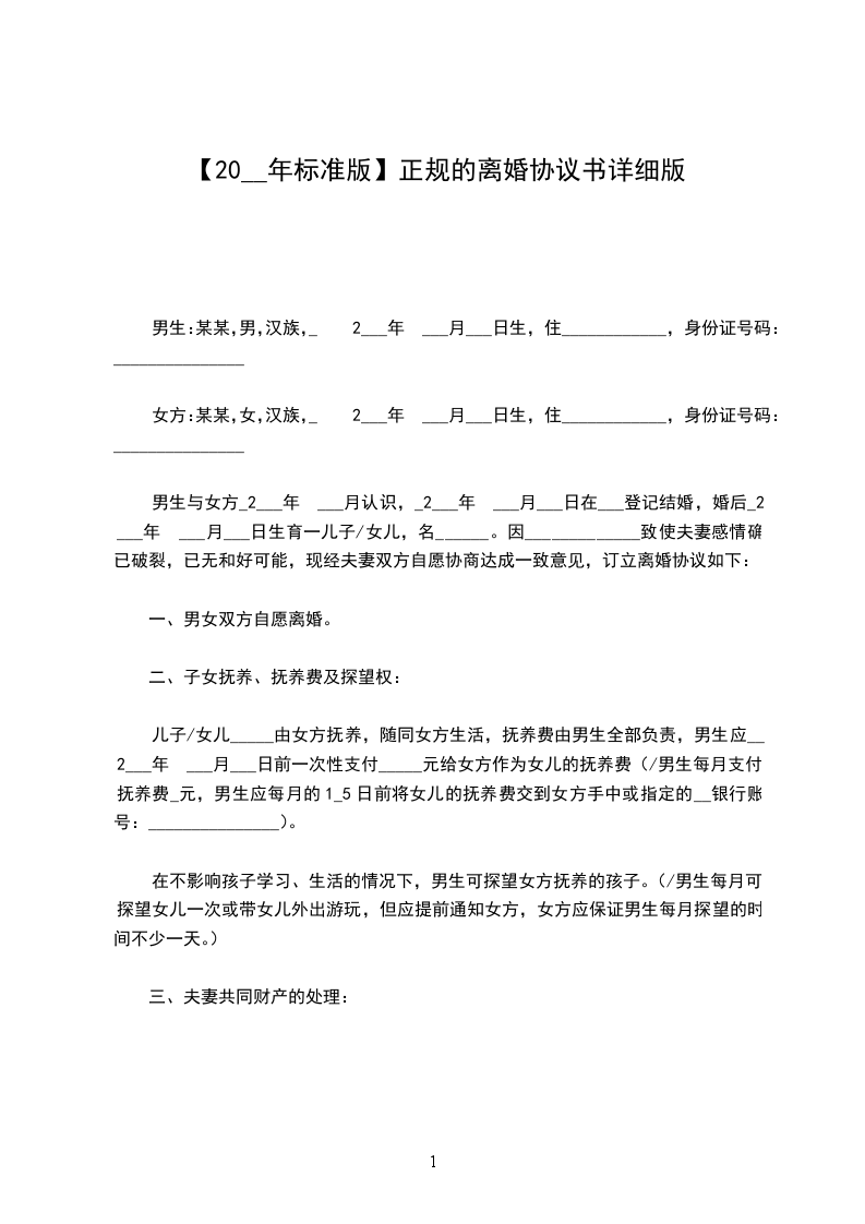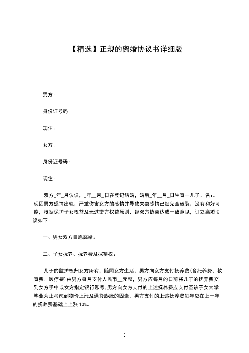 兹双方因故无法继续婚姻生活,经双方同意后立此协议书,以资遵守,其条款如下: