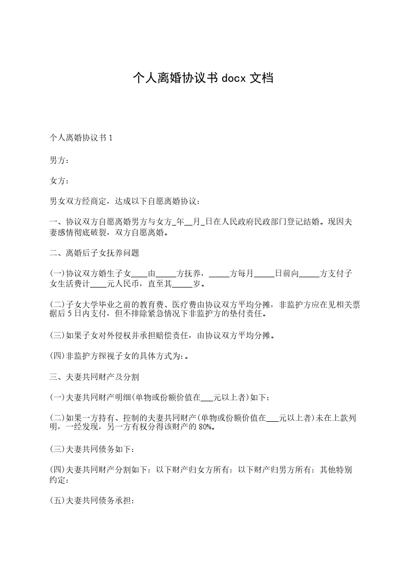 现因双方性格不合,无法共同生活,夫妻感情已完全破裂,就自愿离婚一事达成如下协议。