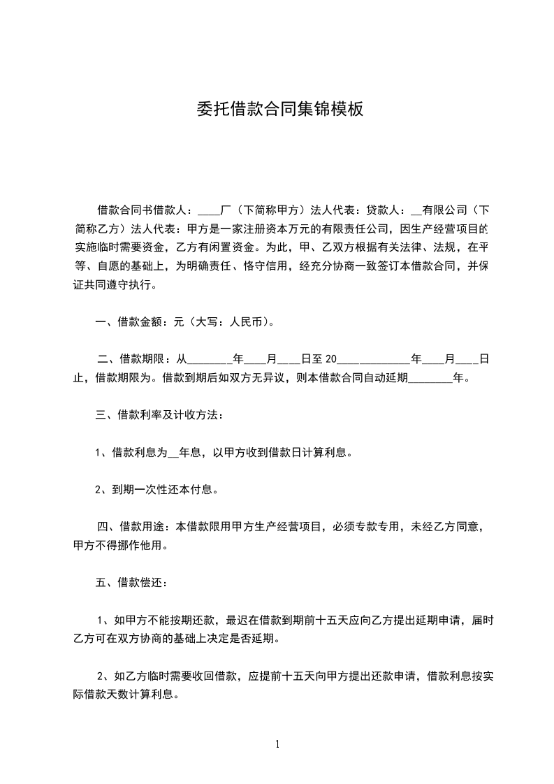 借款合同书借款人:____厂(下简称甲方)法人代表:贷款人:__有限公司(下简称乙方)法人代表:甲方是一家注册资本万元的有限责任公司,因生产经营项目的实施临时需要资金,乙方有闲置资金。为此,甲、乙双方根据有关法律、法规,在平等、自愿的基础上,为明确责任、恪守信用,经充分协商一致签订本借款合同,并保证共同遵守执行。