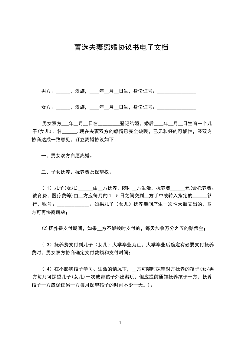 男方与女方_年_月认识,_年__月_日在登记结婚,婚后_年__月_日生育一儿子/女儿,名。因致使夫妻感情破裂,已无和好可能,现经夫妻双方自愿协商达成一致意见,订立离婚协议如下: