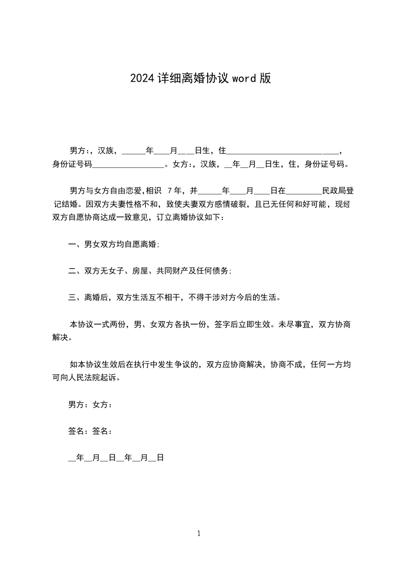 一、男方________与女方________自愿离婚。