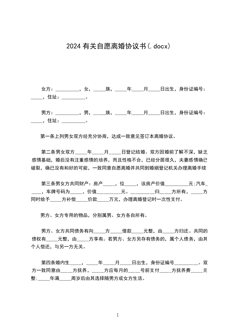 篇2男方:,男,汉族,__年__月__日生,住,身份证号码: