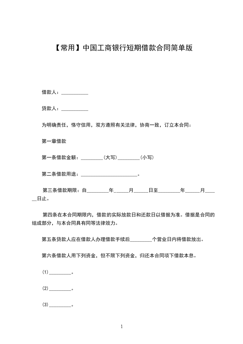 第一条借款方向借款方借款人民币(大写)__________元,用________________。预计用款为________年____元;________年____元;________年____元;________年____元;________年____元。
