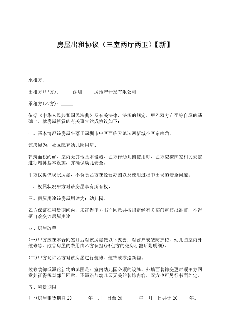 出租方(甲方):_____深圳_____房地产开发有限公司