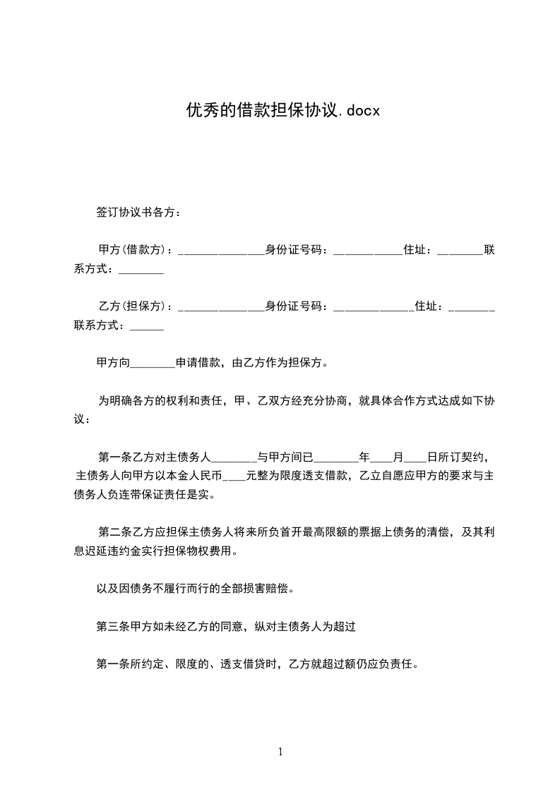 乙方(担保方):_______________身份证号码:______________住址:________联系方式:______