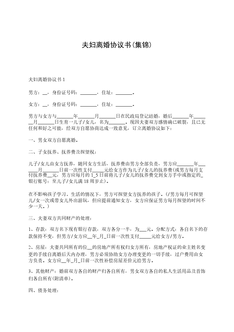 2___年夫妇离婚协议书4男方:______,汉族,____年__月__日生,身份证号码:________________