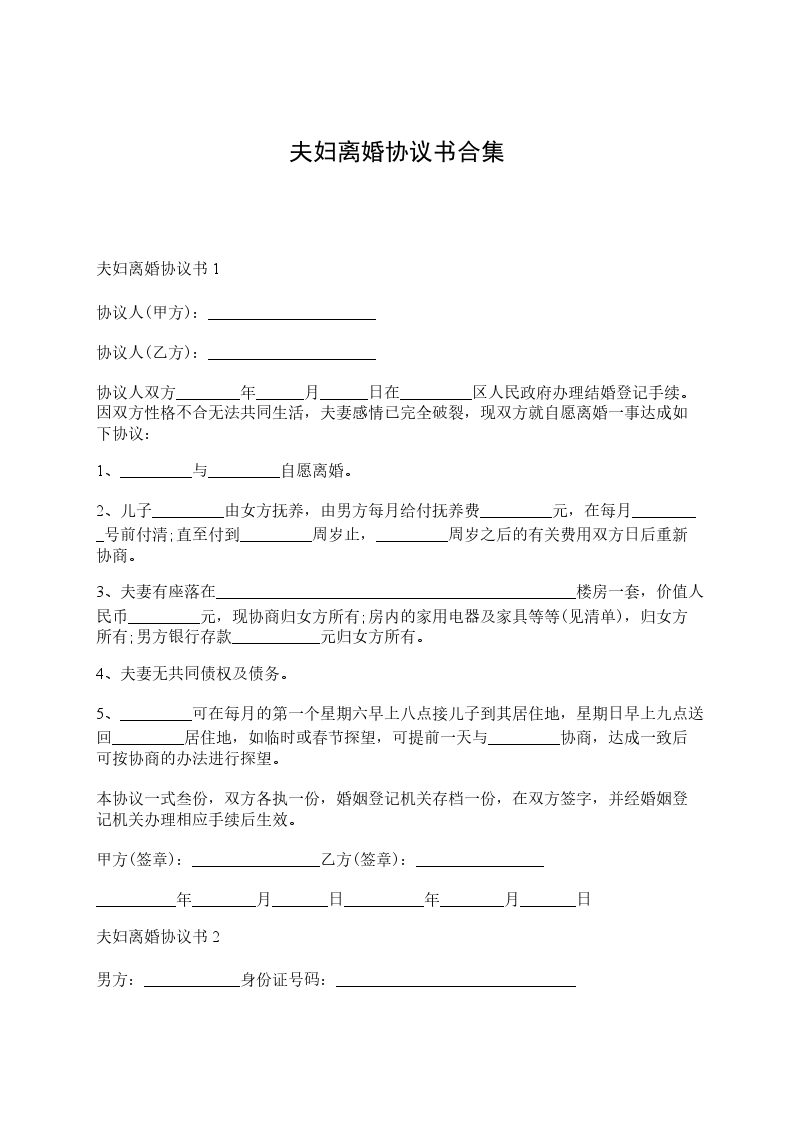 2___年夫妇离婚协议书2男方:______,____族,________年____月____日生,身份证号码:________________